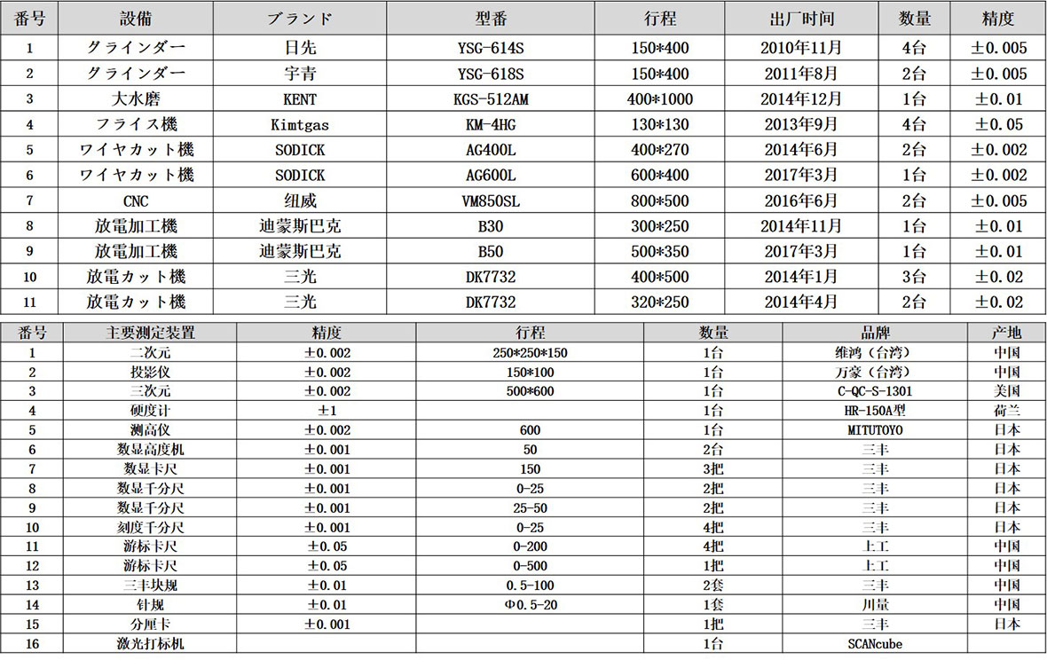 瀚川現(xiàn)在的加工設備及檢測裝置: